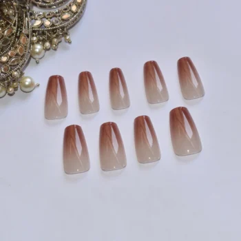 ₹799.00Original price was: ₹799.00.₹479.00Current price is: ₹479.00.Add to cartDive into the allure of the night with Dark Spell, a sultry ombré set from Soul Struck. Featuring a seamless fade from deep espresso to a soft nude, these press-on nails conjure an aura of mystery and sophistication. The high-gloss finish paired with a dramatic coffin shape captures the essence of modern glamour—perfect for bold souls and midnight musings.