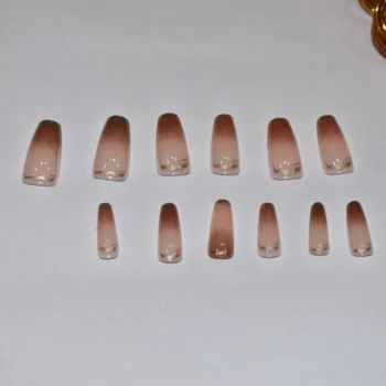 ₹799.00Original price was: ₹799.00.₹479.00Current price is: ₹479.00.Add to cartDive into the allure of the night with Dark Spell, a sultry ombré set from Soul Struck. Featuring a seamless fade from deep espresso to a soft nude, these press-on nails conjure an aura of mystery and sophistication. The high-gloss finish paired with a dramatic coffin shape captures the essence of modern glamour—perfect for bold souls and midnight musings.