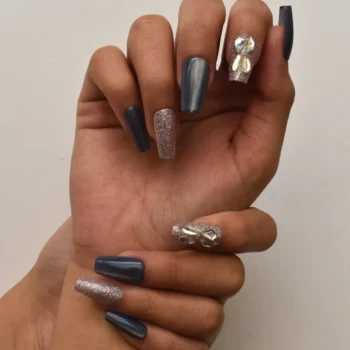 ₹1,199.00Original price was: ₹1,199.00.₹659.00Current price is: ₹659.00.Add to cartThis is what opulence looks like—bold, polished, and unapologetically glam. Luxury Drip combines a molten chrome silver base with statement crystal-encrusted accent nails, creating a stunning contrast between smooth metallics and prismatic sparkle. Whether you’re dressing up for a black-tie event or just feel like dripping in luxury on a Tuesday, these nails are here to elevate your aura.