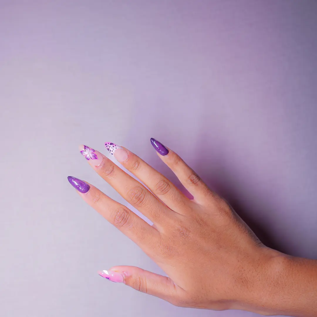 Amethyst Aura by Soul Struck is a bold fusion of mystique, romance, and modern artistry. Designed with a soft nude base, this set is elevated with rich amethyst-purple tones, delicate floral detailing, playful spotted accents, and sculptural textures. The contrast of deep hues and soft neutrals creates a look that feels expressive yet refined—perfect for evening wear, festive moments, or making a statement without saying a word. Amethyst Aura is made for those who love depth, detail, and a touch of drama.