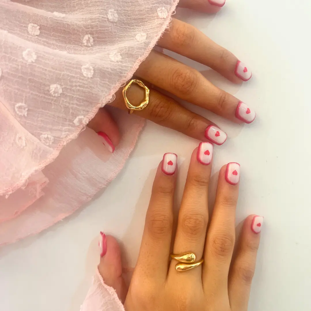 Sweet, subtle, and full of love—Cupid’s Touch is a romantic ode to timeless charm. Featuring a blush-toned ombré base with a crisp red heart at the center of each nail, this set is love at first sight. The delicate gradient edges add depth, while the glossy finish brings an irresistible shine, perfect for date nights, self-love moments, or just feeling cute any day of the week.
