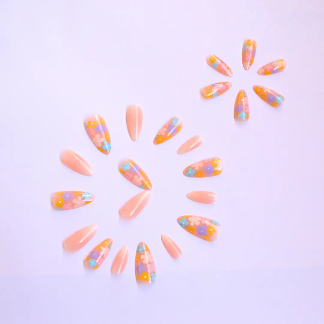 Step into spring with every flick of your fingers. Dil Garden Garden is a burst of joyful florals and soft ombré gradients, designed to lift your spirits and brighten your look. Featuring a whimsical palette of pastel blooms set against a translucent base, these nails are like a bouquet you can wear. Ideal for sunny days, smiles, and spreading a little flower power.
