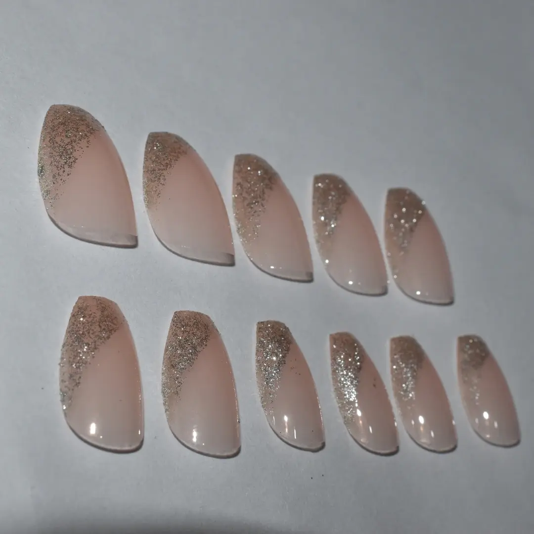 - Colour: Nude base, gracefully tipped with shimmering gold glitter. Some colour differences may occur due to variations in screen resolutions and lighting.