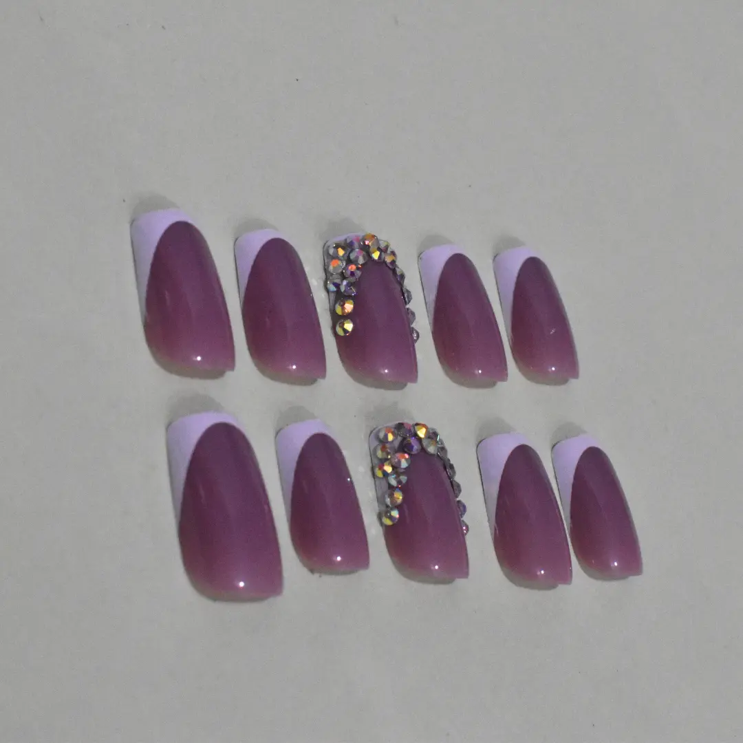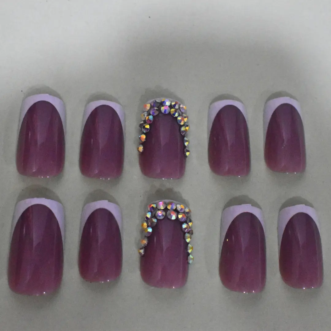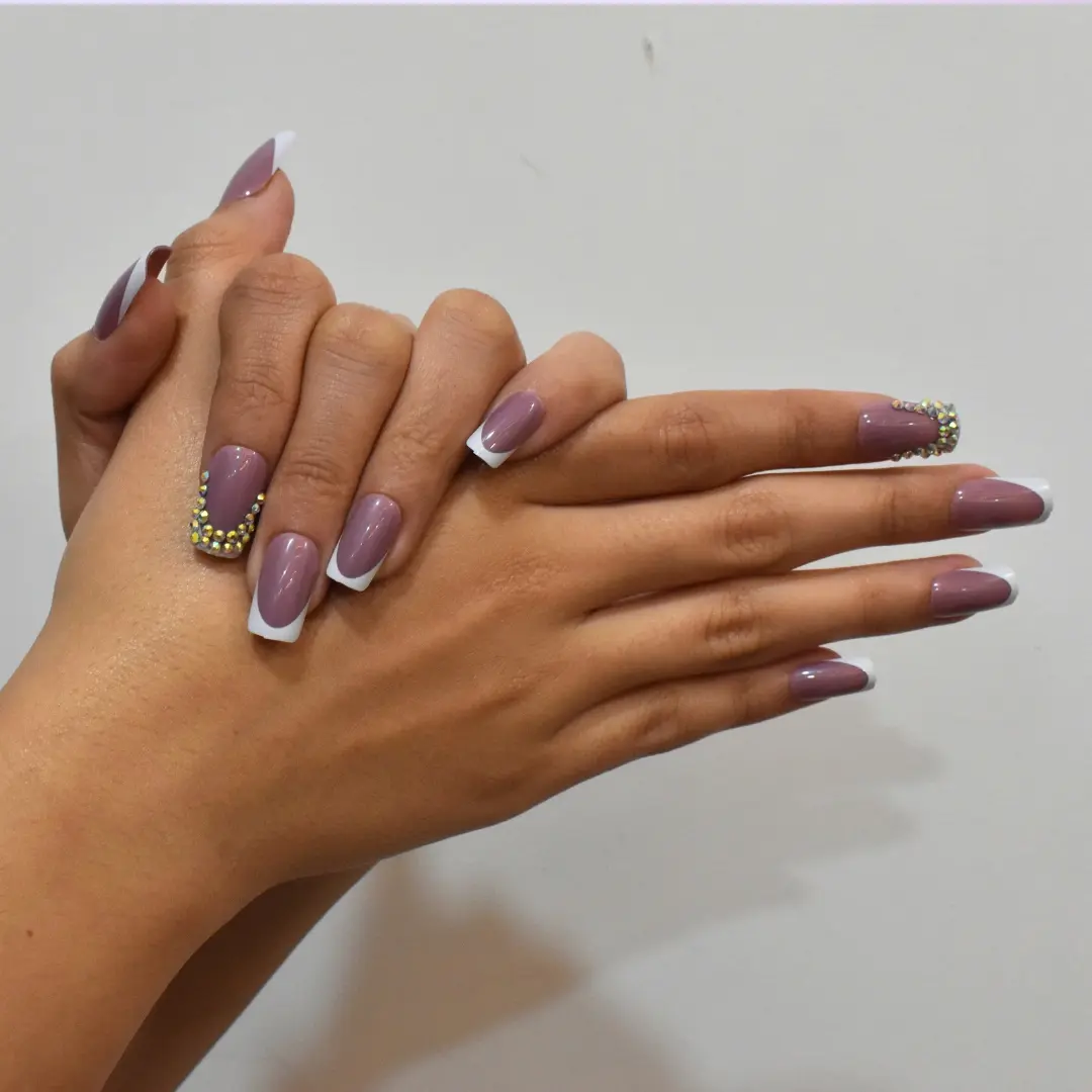 - Colour: Nude base with white tips and rhinestone embellishments (as shown in the picture; slight colour variations may occur due to lighting or screen differences)
