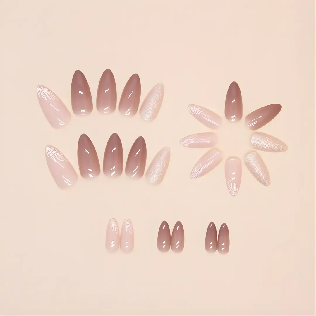 These press-on nails are crafted for durability with a smooth, glossy finish. With regular wear, minor surface wear may occur—handle gently to preserve the detailing and maintain their soft, luminous shine.