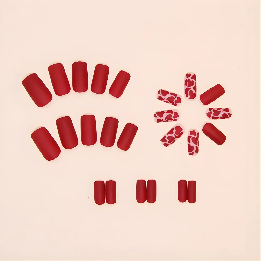 Featuring a rich crimson red base with playful heart accent nails, this design blends classic glamour with flirty charm. Confident yet sweet, Sweetheart is perfect for date nights, celebrations, and moments when your nails deserve to make a statement straight from the heart.